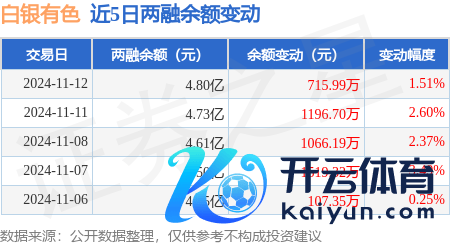 本站音信,11月12日,白银有色(601212)融资买入3262.71万元,融资偿还2550.43万元,融资净买入712.28万元,融资余额4.79亿元开云kaiyun官方网站,近3个交游日已相连净买入累计2985.04万元,近20个交游日中有14个交游日出现融资净买入。