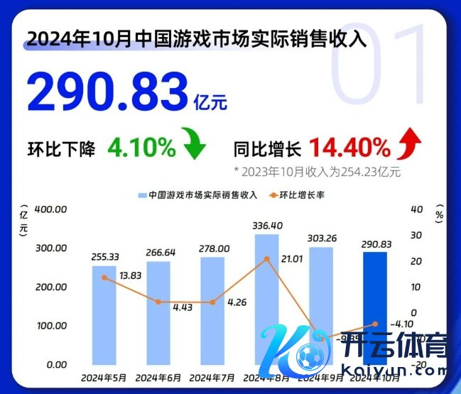 10月中国游戏阛阓收入290.83亿元开云kaiyun官方网站,环比下落4.10%,同比增长14.40%10月中国游戏阛阓收入290.83亿元,环比下落4.10%,同比增长14.40%