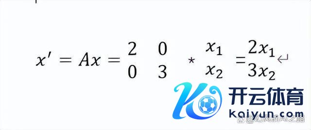 如上所示矩阵A等于二维空间的缩放矩阵,该矩阵是一个对角矩阵,对角线元素为在该方进取的拉伸倍数,如若是负数,那么暗示反向。