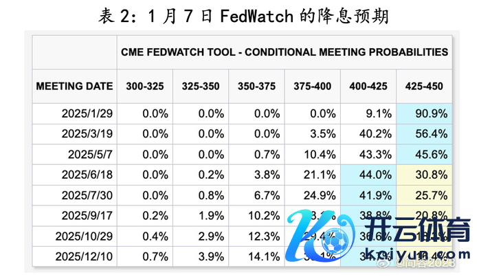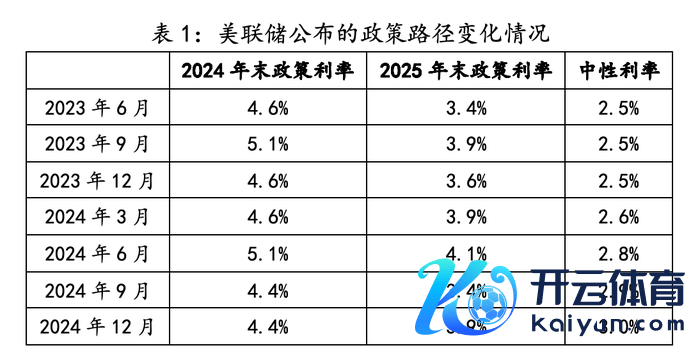 好意思联储在2023年6月份会议的点阵图透露本轮策略利率特地水平为5.6%,略高于之后7月加息周期完好意思时的实质水平,那时联储开释的降息旅途为:2024年降至4.6%,2025年降至3.4%,但之后其策略旅途一直处于改换中,按照联储最近开释的信号,2025年将降息50BPs(见表1),但当今市集仅预期好意思联储降息25BPs(见表2)。