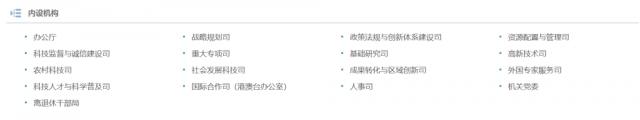 科技部官网"内设机构"栏目信息。科技部官网截图
