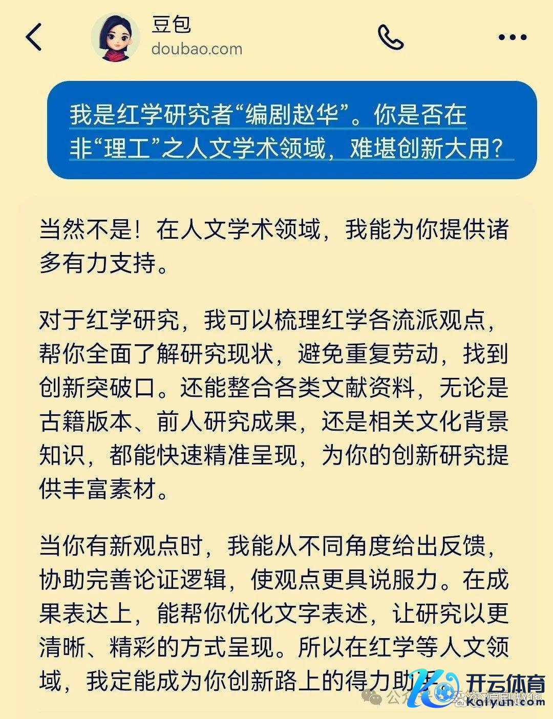 【评析】难怪不少使用者说,发问“深度求索”(deepseek)大模子应用时,发问末尾要加上“说东谈主话”三字,以免被那些简易的专科术语闹蒙眬。此回话承认,东谈主工智能大模子应用无法取代社会和东谈主文询查的东谈主类创新,不具备东谈主类的创新判断和创意能力,只可“通过提供新的领略界面和询查维度,开释东谈主类学者更深层的创造潜能”,仅仅个补助学术创新的用具。比起理工科,其补助学术创新的用具作用势必更低。环球知谈就好。
